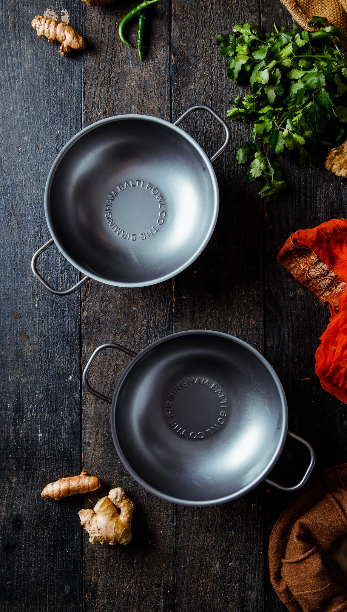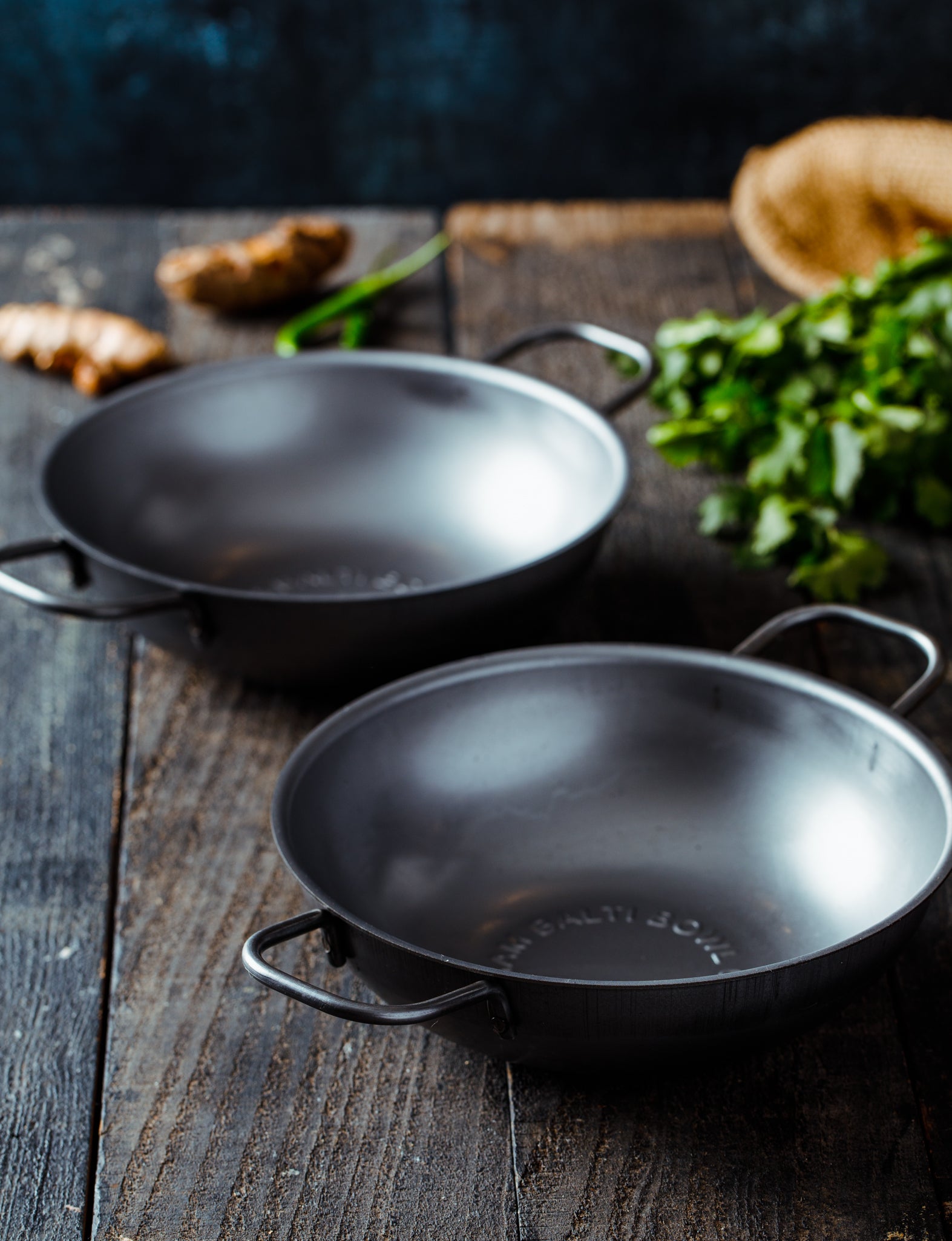 Our authentic balti bowls are designed and made in Birmingham using quality carbon steel, replicating the original 1970s bowls which gave birth to this iconic dish.
